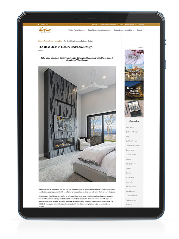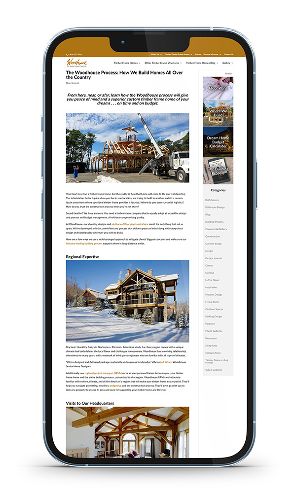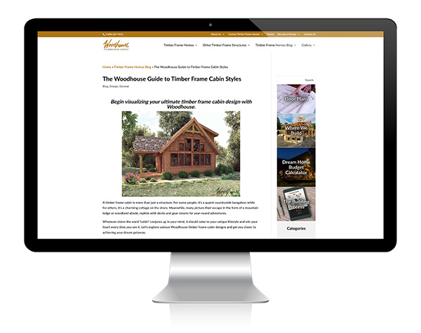With a robust content calendar that draws on search analytics, current trends, and company projects to not just inspire and inform but ultimately turn clicks into clients, AIM Marketing Services elevated the digital presence of Woodhouse, The Timber Frame Company and catalyzed its lead generation strategy.