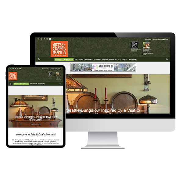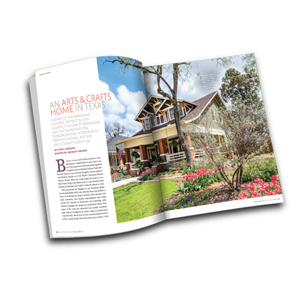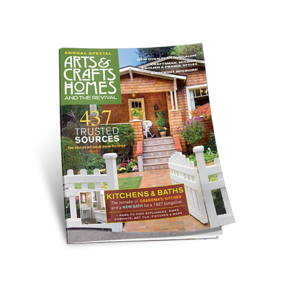 Arts & Crafts Homes – – the lively website and our annual Resource Guide – – cover both the original movement and the ongoing revival in a comprehensive way. We provide expert advice on all aspects of home: kitchen and bathrooms to carpet, fine furniture and pottery, to millwork, roofing, doors and windows, plumbing, floors, hardware and lighting. The Resource Guide, now a larger annual “bookazine” with enhanced editorial chapters and beautiful photography, helps Arts & Crafts aficionados find the artisans and products to help them build, renovate, and decorate their bungalow, Craftsman, Prairie, Tudor Revival, or Arts & Crafts Revival home.