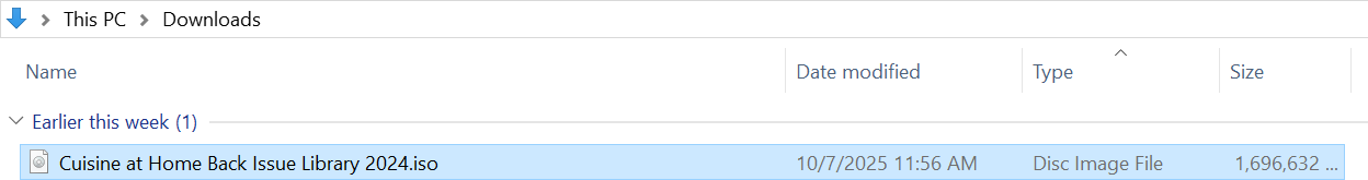 After you make your purchase, look for the download link. It should be on the receipt page and in the receipt email. The zip file is a compressed folder containing the ISO file, which is the disk image that contains the back issue archive software and files. Click the link to download the zip file.